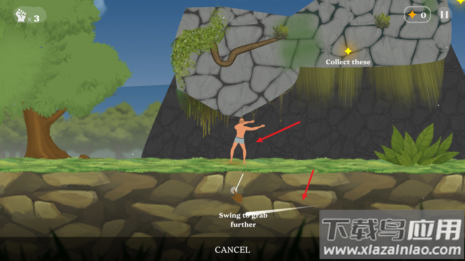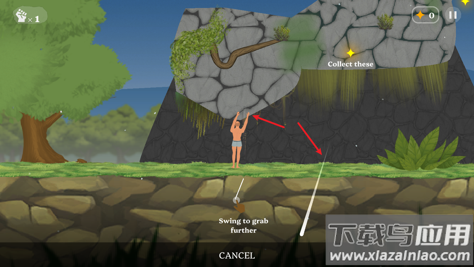 3、每一道关卡都是不同的构造,玩家需要完美的控制角色进行攀岩,成功登顶才能过关。