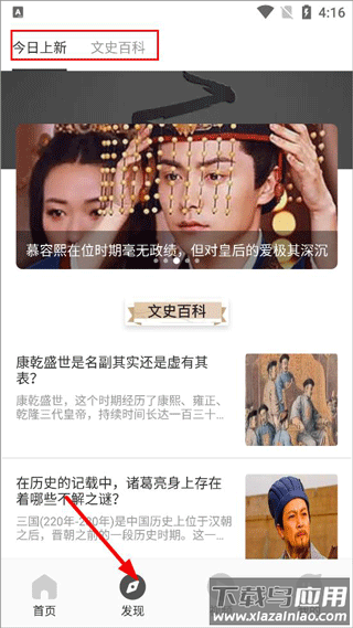 2、点击发现,可以查看今日上新和文史百科;