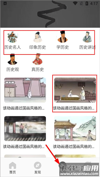 3、点击视频,可以查看历史名人和国画风格的历史小故事;