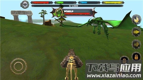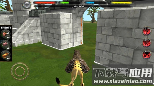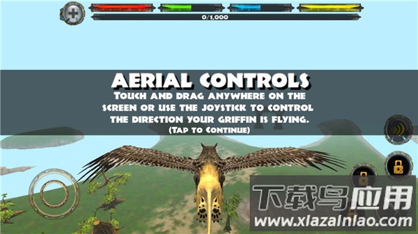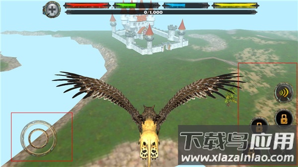 2、游戏中,左屏幕,可以控制狮鹫的移动的方向;