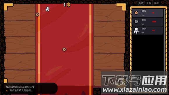 2、持续点击收集金币,右侧菜单可解锁自动翻转助手和特殊硬币;
