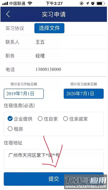 4、提交实习申请时需完整填写企业信息,包括单位性质、实习待遇、负责人联系方式等,并上传实习协议照片;