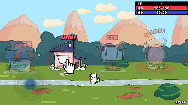 1.启动游戏后进入主界面,点击HOME按钮开始冒险;