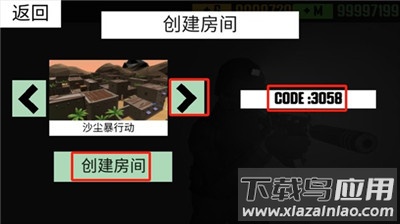 3、创建房间时,可以自由选择不同的地图,CODE是添加房间的密码。