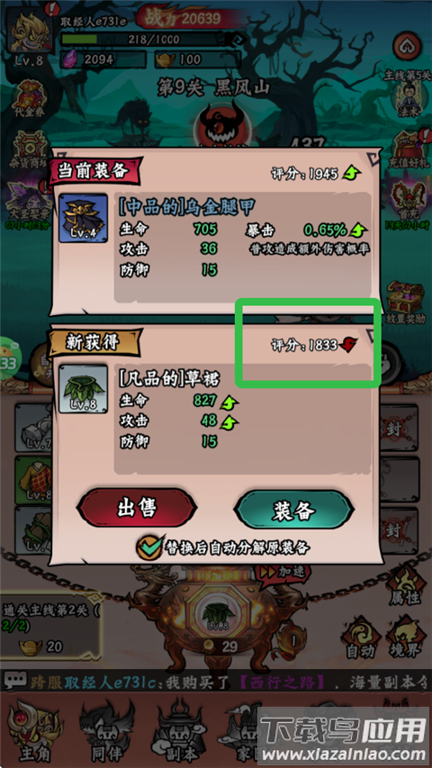 2、优先穿戴高品质装备,替换下来的低级装备及时出售;