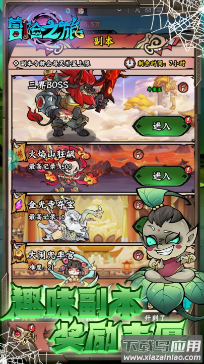 冒险之旅是一款以西游为背景的卡通风格策略塔防游戏,玩家将化身取经人开启奇妙旅程。游戏融合了角色收集、装备打造和放置挂机玩法,通过开箱炼器获取神兵法宝,招募孙悟空等经典角色组建队伍。丰富多样的副本挑战和宗门社交系统让游戏充满趣味性,每日登录还能领取海量代金券加速成长;暗黑风格的美术设计为传统西游故事增添新鲜感,装备自由交易和同伴助战系统让冒险过程更加轻松愉快。喜欢这类游戏的玩家现在就可以下载体验。