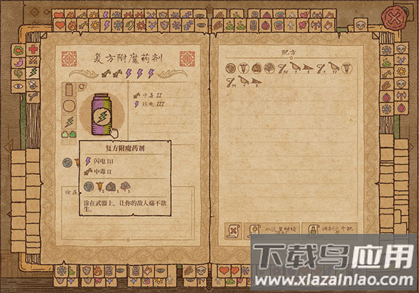 5、复方附魔药剂:结合闪电III与中毒II特性,涂抹于武器上,能给敌人带来极大的痛苦。