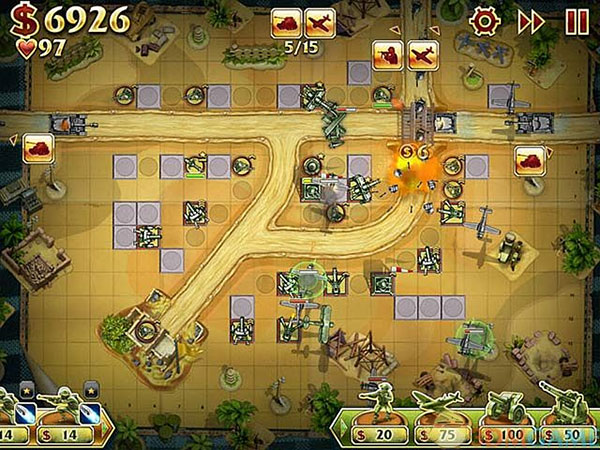 步枪兵:造价最低的基础单位,擅长对付步兵但对抗装甲薄弱,建议优先升级攻击力;火焰喷射兵:对步兵和装甲车均有伤害,中期发力明显,需要集中资源快速升满级;拦截机:专门克制空中单位,升级后能兼顾地面攻击,无飞机关卡无需部署;火炮:专精反装甲作战,对步兵效果较差,适合在装甲部队出现时紧急布防;防空炮:空中单位克星,与拦截机配合效果最佳,高级防空炮能延缓地面部队推进。