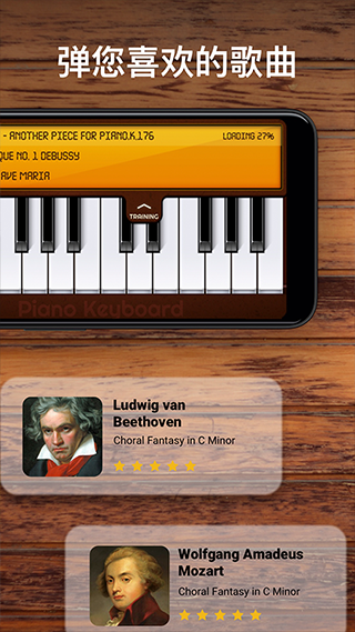 3、曲谱训练模式:内置分级教学曲目,支持速度调节与分段循环;