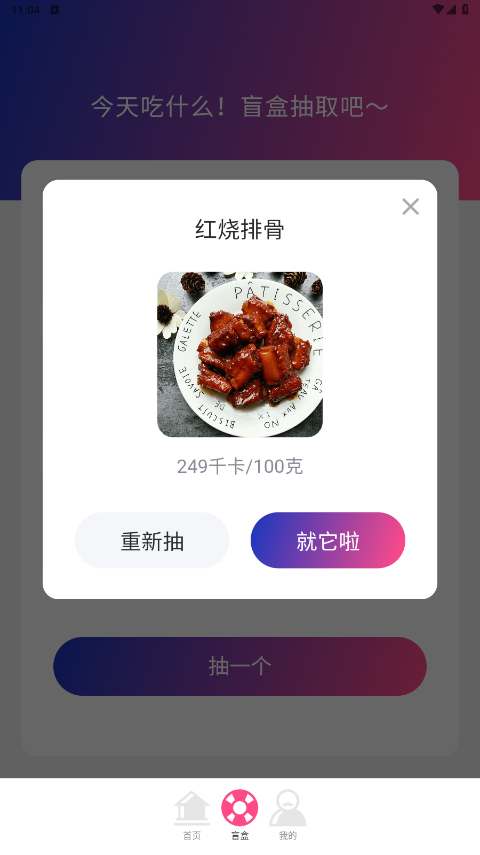【今日吃什么盲盒抽取】内置智能随机算法,解决每日用餐选择难题;