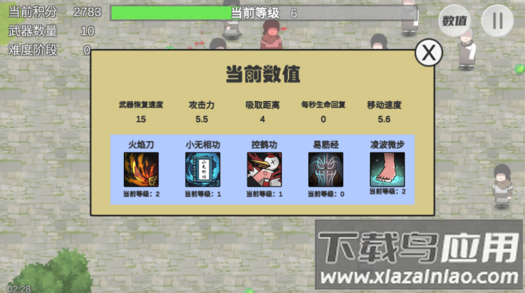 3、通过方向键控制角色移动,飞刀会自动攻击范围内敌人;