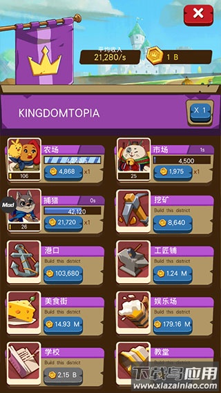 空闲动物大亨是一款轻松有趣的卡通风格模拟经营游戏,玩家将扮演新任动物国王,肩负重建破败王国的重任。通过合理规划建筑布局、升级各类设施、招募动物居民,逐步恢复王国往日的繁荣景象。游戏采用放置玩法,即使离线也能持续获得收益,适合喜欢休闲养成的玩家体验。独特的税收系统和市长雇佣机制让经营策略更加丰富,可爱的动物角色和明快的画面风格增添了游戏趣味性。如果你喜欢建设类游戏,不妨下载试试看。