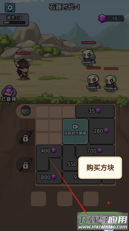 1、点击购买方块 通过基础方块搭建武器框架,这是提升战力的第一步;