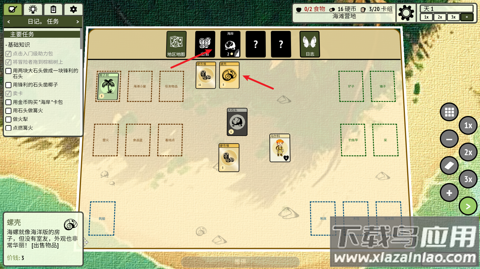 6、使用金币在海岸商店购买特殊卡牌补充资源;