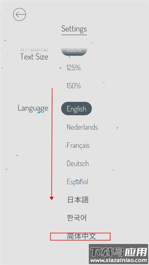 2、在菜单中找到语言选项栏,滑动选择简体中文;
