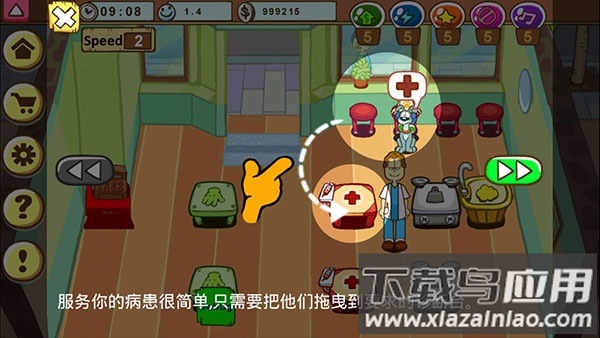 1、初入游戏时,操作十分简单,只需将动物病患拖拽至对应诊疗台即可开始治疗;