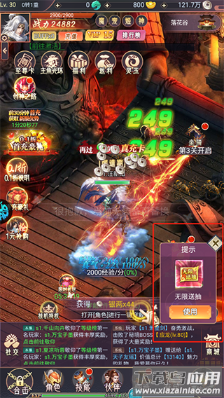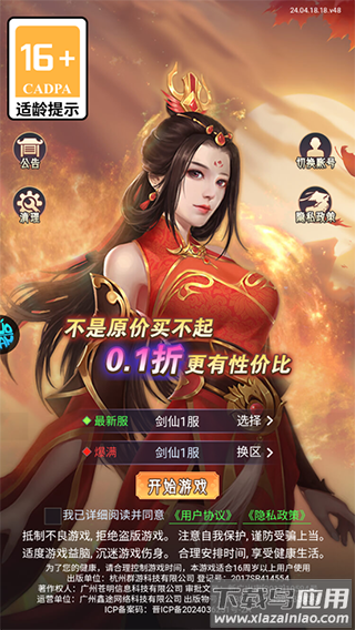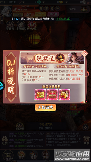2、新区开放前三天享0.1折充值优惠,每日任务赠送648元宝代金券;