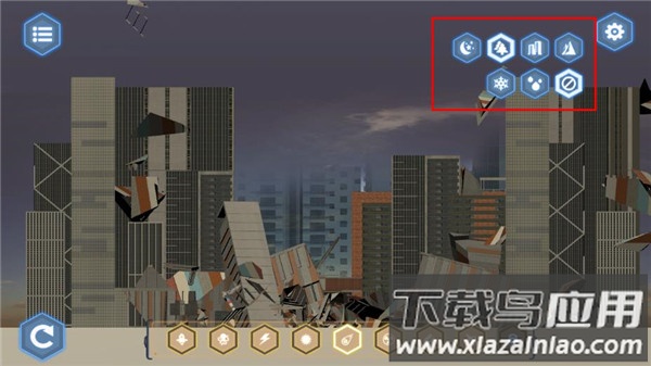 游戏提供二十余种毁灭性武器,从微型核弹到气象武器应有尽有;每次攻击都会在地面留下持续燃烧的弹坑,配合建筑崩塌的烟尘效果营造出电影级战场。特别设计的慢动作模式,能清晰看到玻璃爆裂时飞溅的碎片和钢筋扭曲的瞬间;当使用黑洞吞噬整条街道时,连路灯都会被连根拔起吸入漩涡中心。