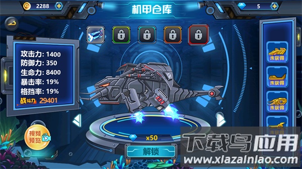 3、机甲仓库中可查看当前拥有的所有机甲和部件;