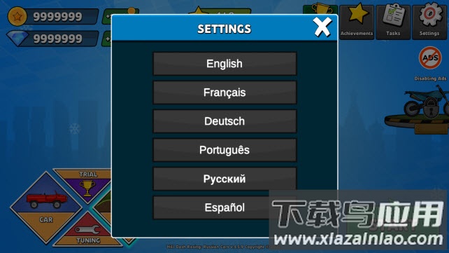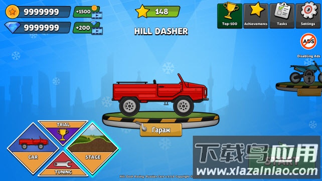 1、提供多款可解锁车辆,每辆都能通过零件升级提升性能;