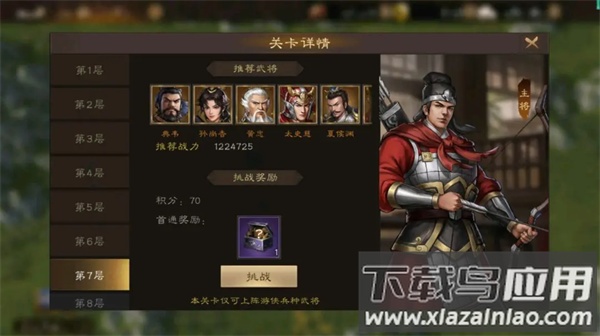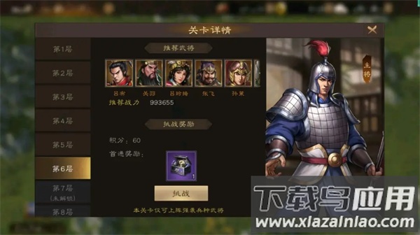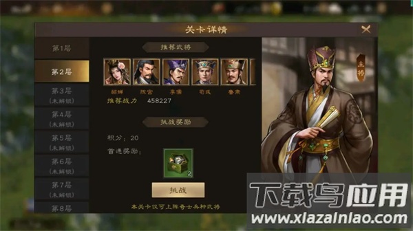 1、强袭试炼:仅限骑兵/枪兵上阵,建议选用张辽等突击型武将速战速决;