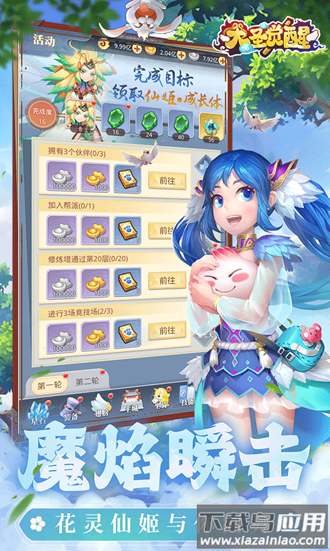 大圣觉醒0.1折版本是一款以西游记为背景的Q版卡牌放置手游,采用竖版操作模式,轻松解放玩家双手。游戏中你可以招募孙悟空、观音等经典角色,培养变异宠物参与合宠进阶;挑战百层妖塔获取稀有装备,体验封妖挖宝的高爆率乐趣。酷炫的翅膀坐骑搭配动态战斗特效,重现大闹天宫的震撼场景;每日登录送神兽、现金券和VIP特权,低门槛享受高福利。喜欢西游题材和放置玩法的朋友,现在下载还能领取10万金券开局福利。