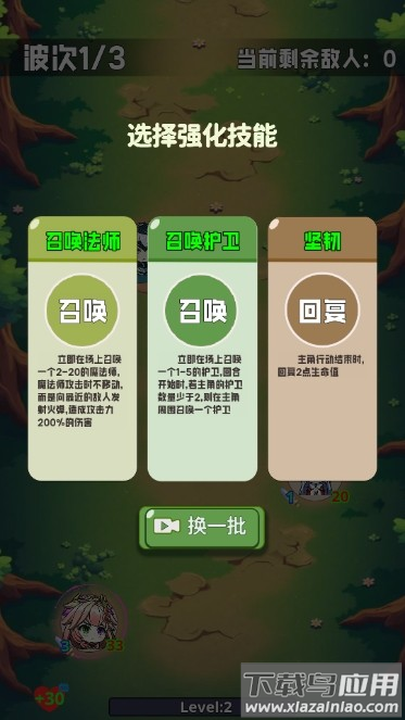 2、通关后可从随机三项强化中选择一项提升战力;
