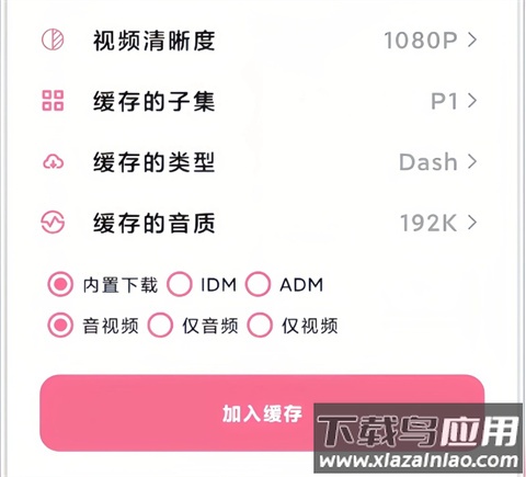 3. 选择目标画质和音质,点击加入缓存队列开始下载;