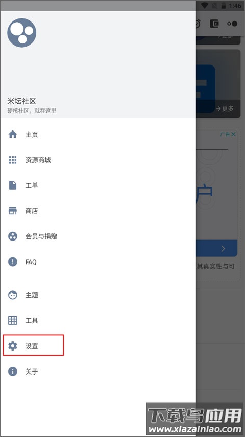 1、启动应用后点击左上角菜单图标,进入个人中心选择设置选项;