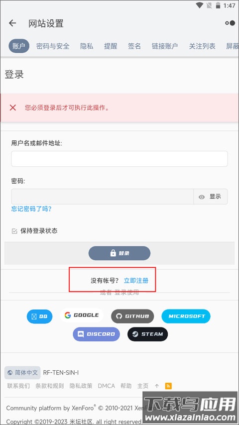 2、在网站设置界面找到注册入口,点击立即注册开始账号创建;