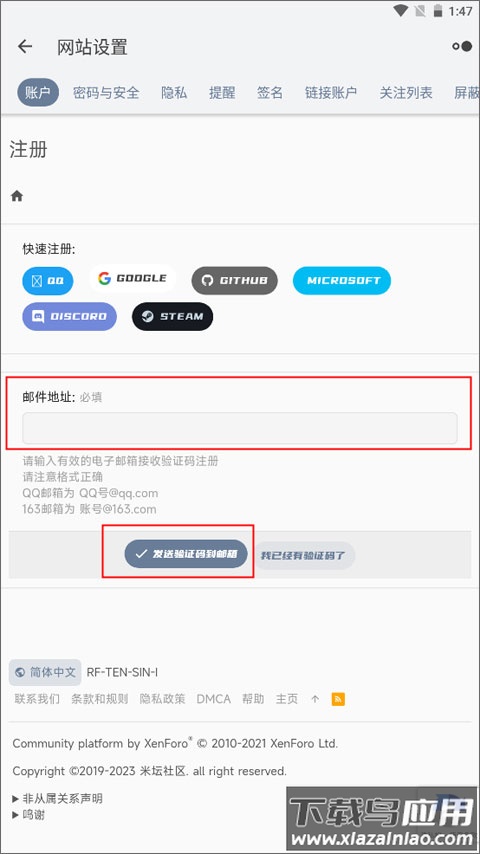 3、填写有效邮箱地址获取验证码,系统会将验证信息发送至注册邮箱;