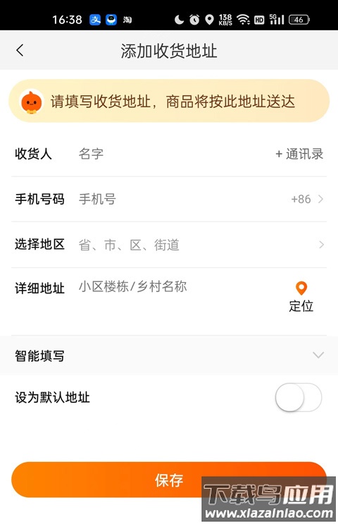 4、进入地址编辑页面可添加或选择已有地址;