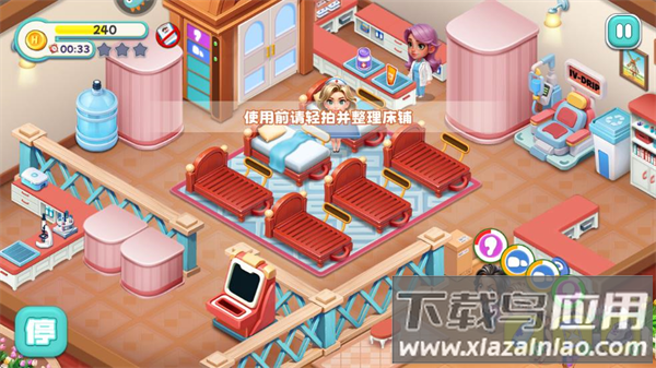 在这款轻松治愈的模拟经营游戏中,你将化身医院管理者,开启一段温馨的医疗之旅。游戏采用清新可爱的Q版画风,玩家需要细心照料每位病人,通过升级设施、培养医护团队来提升医院服务水平。从诊断治疗到配药护理,每个环节都需要你亲力亲为,随着关卡推进还能解锁加速技能和特色活动。如果你喜欢经营养成类游戏,不妨下载体验这份独特的治愈感。