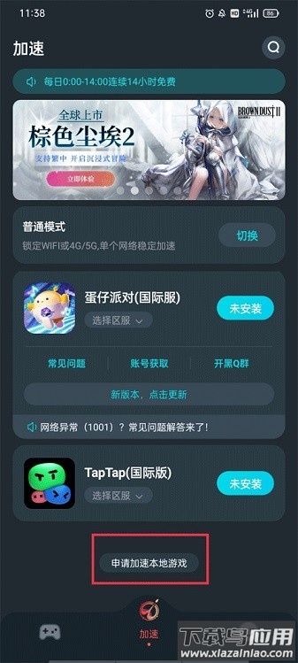1. 启动APP进入主界面,点击底部【加速】选项,选择"申请加速本地游戏"功能;