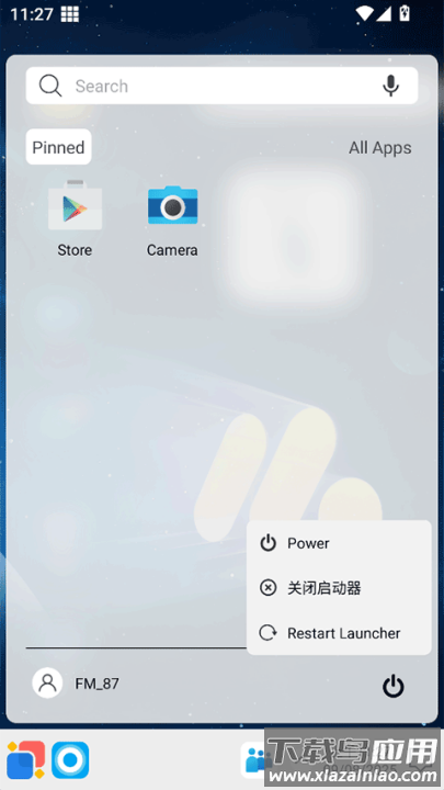 4、返回到启动器的桌面上在点击左下角的开始菜单后就会将手机上的应用全部像电脑一样进行显示使用