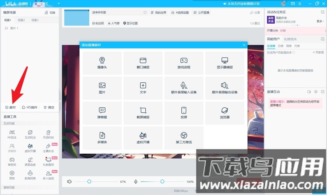 3. 打开手机端应用进入直播中心界面;