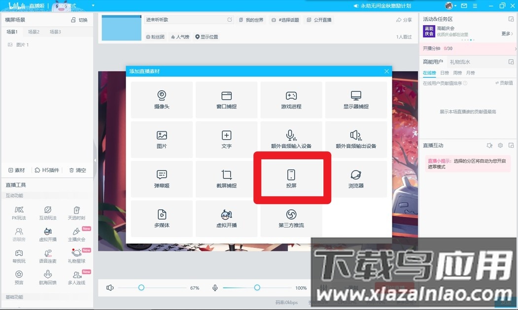 【多直播场景覆盖】支持手游画面实时捕捉、前后摄像头切换及纯语音直播模式;适用于游戏解说、才艺展示、聊天互动等多种内容形式,一键开启零门槛直播。