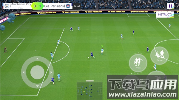 采用动态光影技术的3D球场真实模拟草皮摩擦与球员碰撞,独创的攻防转换系统需要玩家实时切换战术思维。右侧功能键区集成假动作、弧线射门等进阶操作,配合左摇杆可实现急停变向等专业技巧;比赛回放系统会智能捕捉关键镜头,帮助分析战术执行效果。