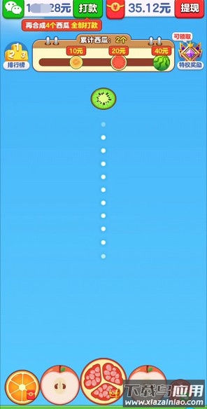 每次成功合成水果都会积累红包金额,水果上显示的数字代表当前等级;完成特定合成次数还能触发额外红包奖励,西瓜合成可直接获得现金红包。