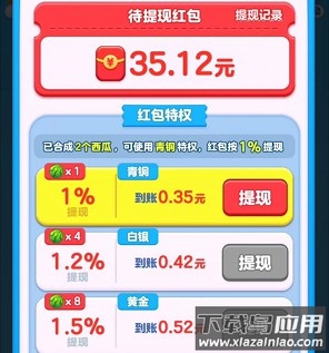 游戏内设置红包和现金两种奖励形式,最低0.3元即可申请提现;提现金额与西瓜合成数量成正比,合成越多收益越高。