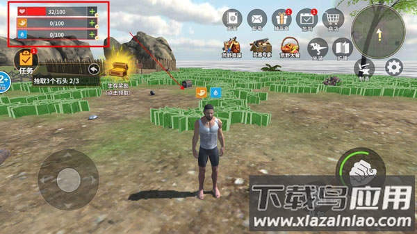3、实时监控生命值、饥饿度和水分三项核心指标,任何一项归零都会导致生存失败;