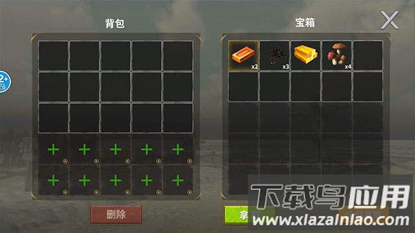 4、遇到闪光物品时点击拾取按钮,材料可用于制造武器或建造庇护所;