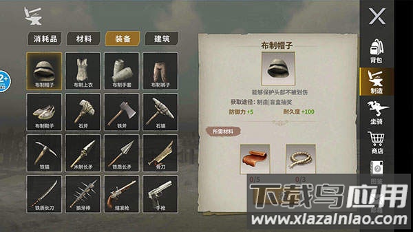 8、制造界面包含上百种配方,从简易石斧到高级陷阱都需要收集对应材料。