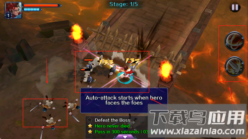 1、游戏初始需要选择主力武将,进入关卡后角色会自动前进,遭遇敌人时立即展开战斗;