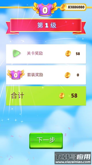 5、每关结束后会详细展示获得的星级评价和装扮碎片;