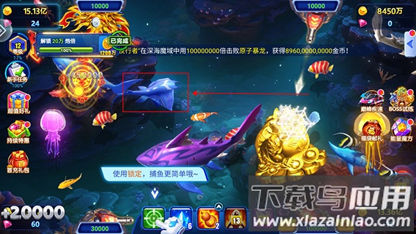 3、鲨鱼头部命中率提升30%,侧翼攻击适合奖金鱼种。