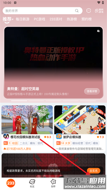 233乐园是一款专为游戏爱好者打造的免费平台,提供海量精选游戏资源,满足各类玩家的需求。在这里无需繁琐的搜索和下载步骤,只需轻松点击即可快速体验热门游戏。平台涵盖休闲益智、竞技对战、角色扮演等多种类型,定期更新最新游戏内容;同时提供详细的攻略和工具辅助,让玩家获得更流畅的体验。操作界面简洁直观,无论是新手还是资深玩家都能快速上手,喜欢的朋友快来下载吧。