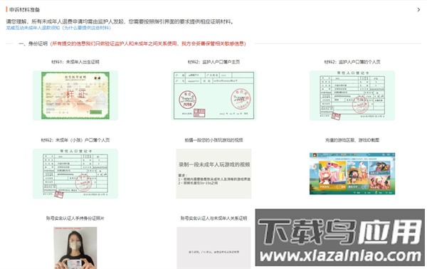 需准备户口簿户主页/个人页、出生证明、游戏视频录像、充值记录截图等;