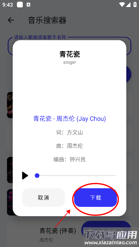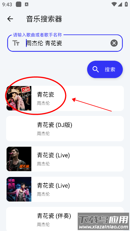 3、从搜索结果中选择目标曲目,点击下载按钮;