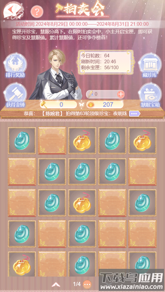 拍卖会每日10:00-21:00开放,每轮持续30分钟;使用金锤开启宝匣可获得慧眼值,累计慧眼值解锁阶段奖励。金锤可通过完成日常任务获取,或在商城使用银两兑换;活动结束后未使用的金锤将按比例折算为资源返还。